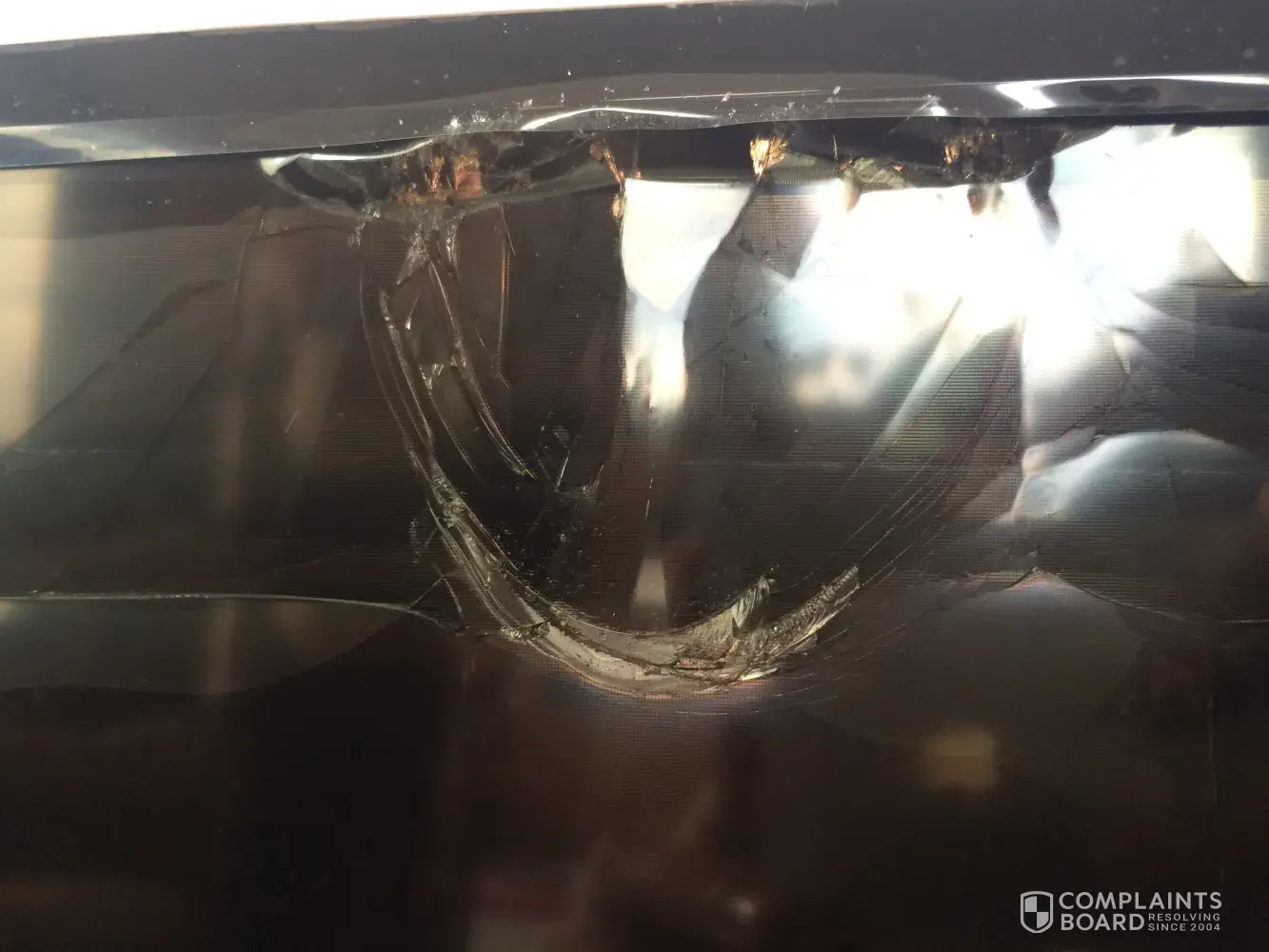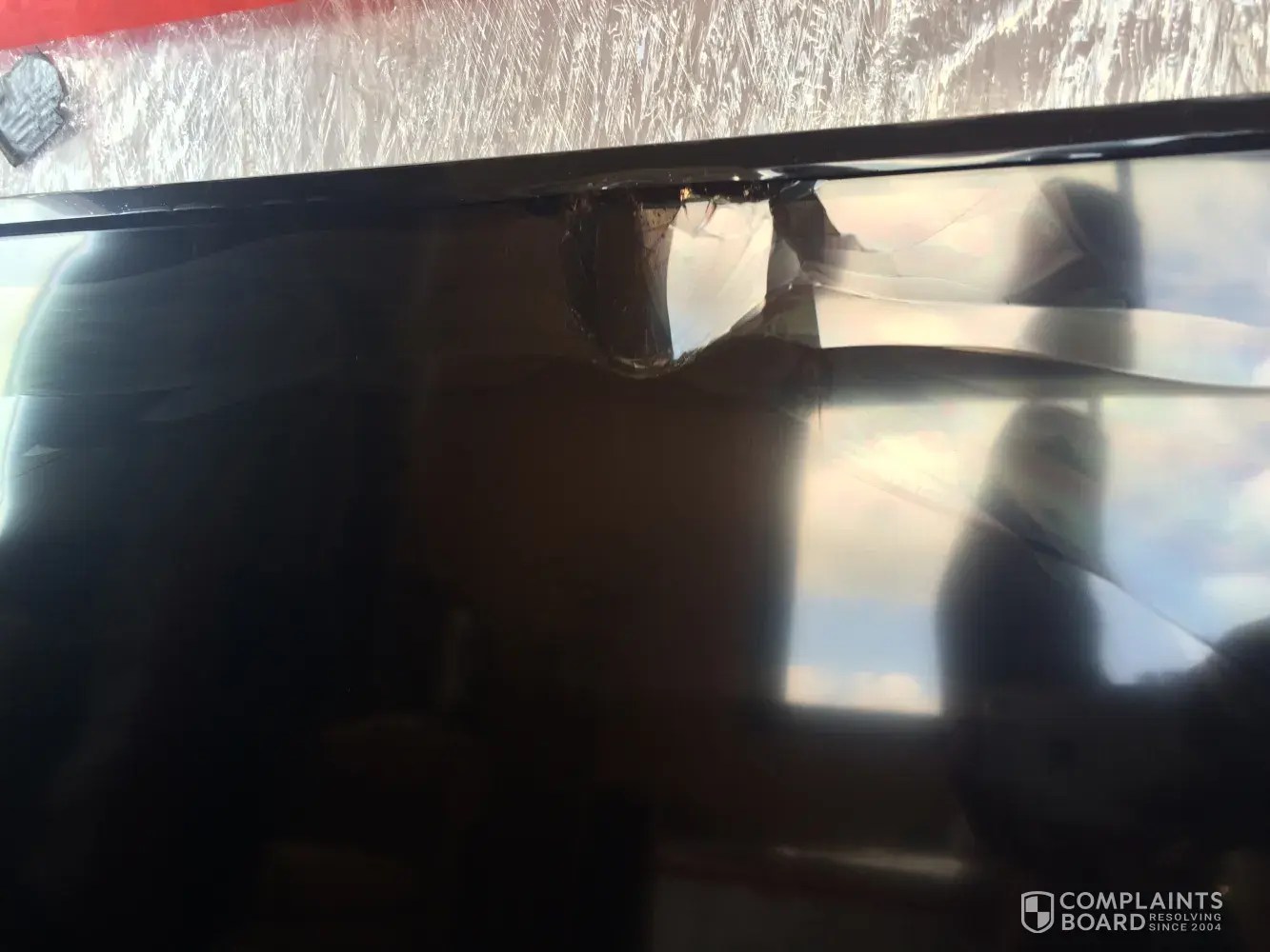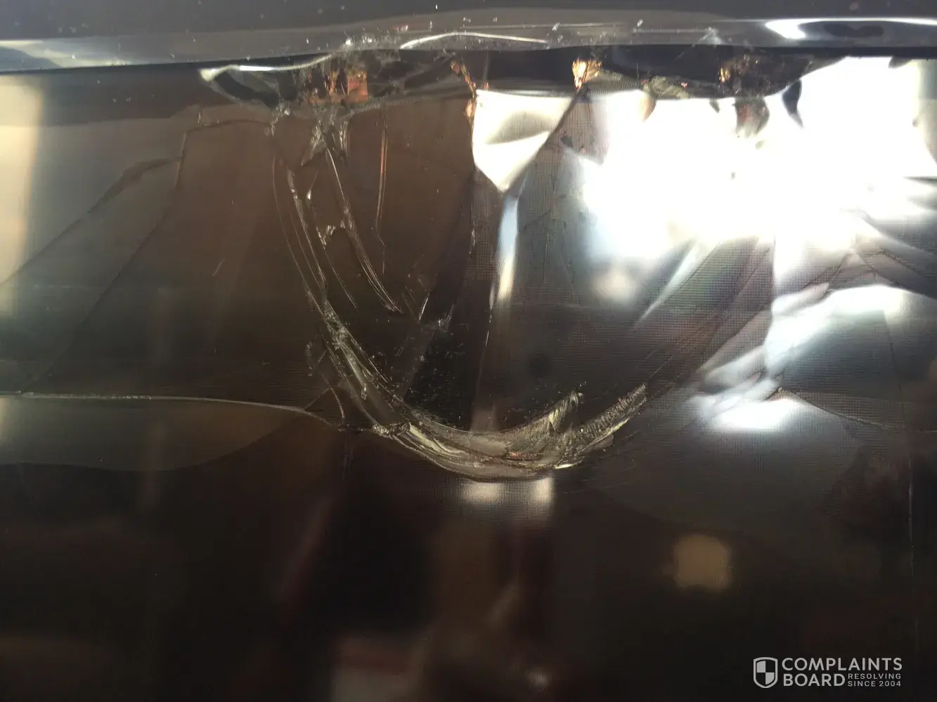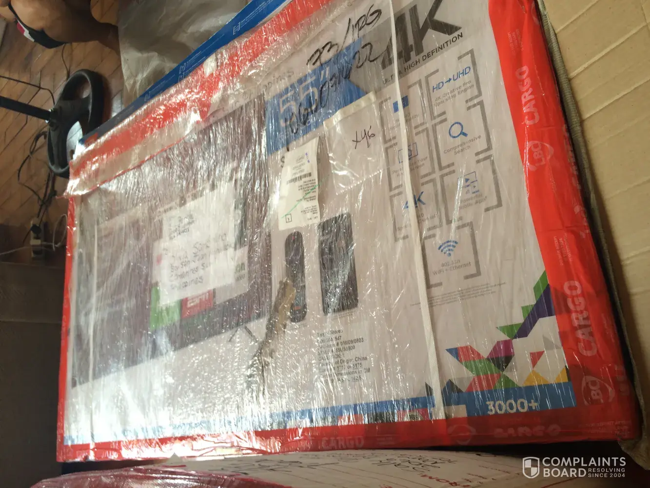 We would like to inform your office regarding the Cargo Box we recieved yesterday April 24, 2017 at 12:00 noon with tracking number [protected] that the 55' TCL Roku HD Smart Television inside the Box were totally damaged. Please contact us of what should be the process of this complain with these ceplhone numbers [protected] / [protected] / [protected]
