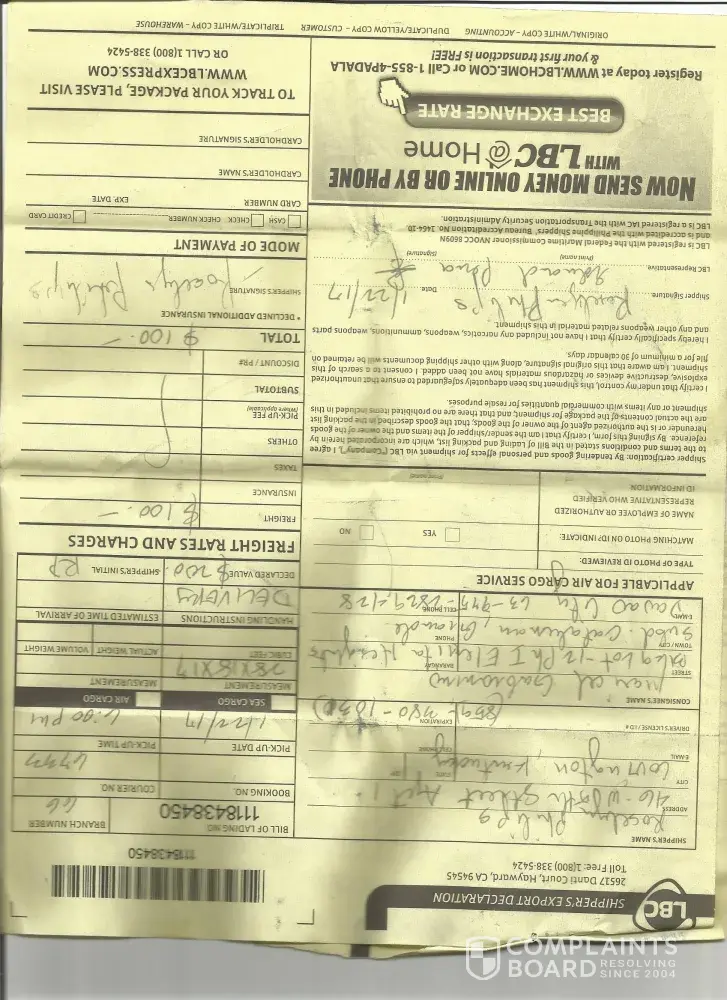 Despite phone call complain was establish there was no action from LBC the delay of delivery of my balik bayan box in the Philippines which upset me.
