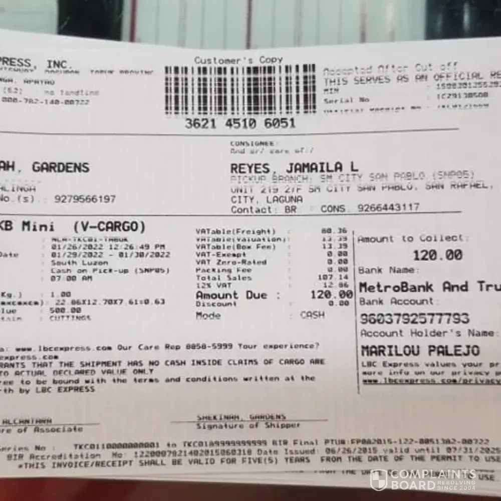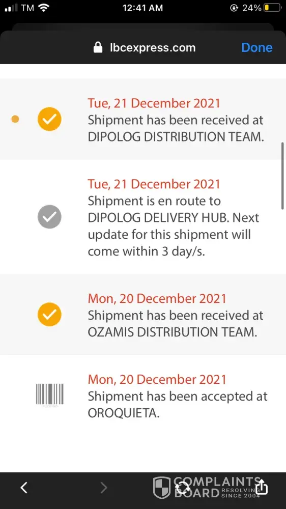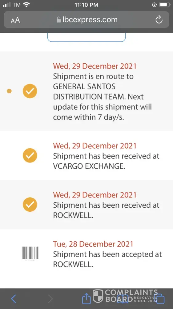 I sent 7 boxes through LBC only 1 arrived and they keep saying they have escalated to the Cebu team and waiting for a response. I sent these packages October 13 2021 it's now January 17 and they still have not arrived! $700 of shipping costs and no scans past Manila! Last week they said they would deliver by end of week or early next but still no scans and no delivery... Back to asking Cebu team again! This BS has gone on for a month the CEO needs to get a handle on this or the government should shut them down!