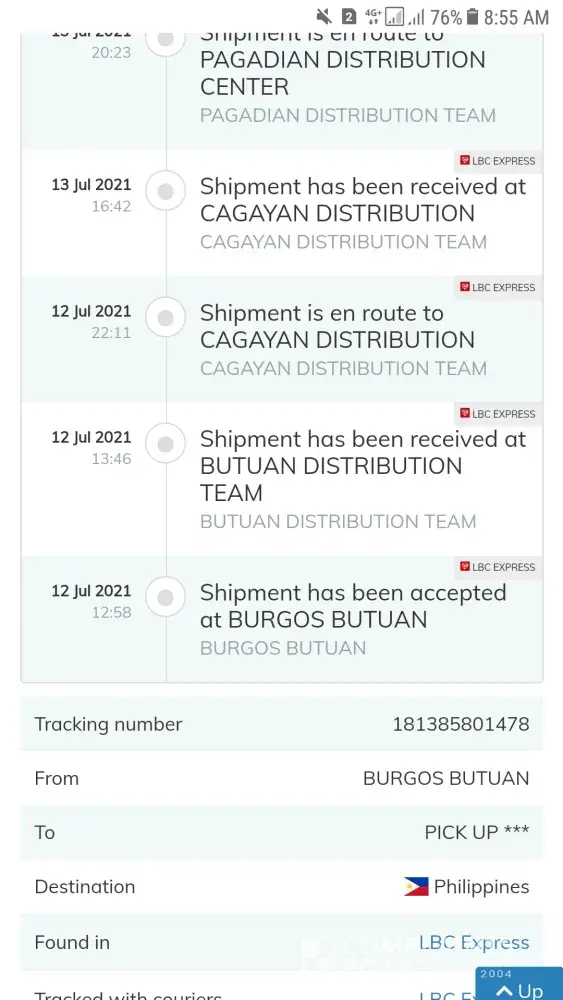 On the contrary, LBC Dipolog branch told my relative, Carmelita Dahili (the daughter of the patient), that the shipment was not received yet since it is being shipped by Cebu directly to Zamboanga. It was a different story told to her in prior hours that the item was yet in Cebu.