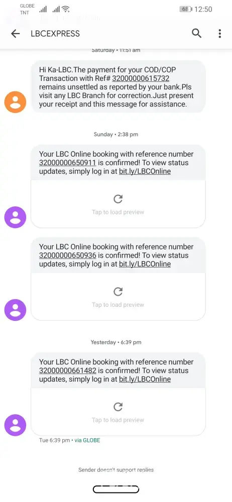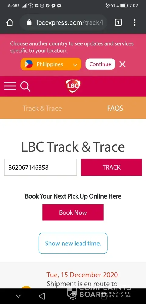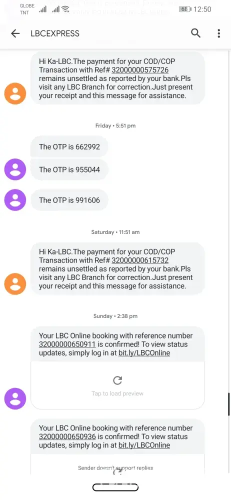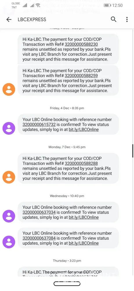 In addition, my package subject for cash on pick up has arrived Dec 15 as per my seller but LBC just sent notif today, Dec 17 (two days aged) given that it will be returned to seller if not claimed after 3 days.