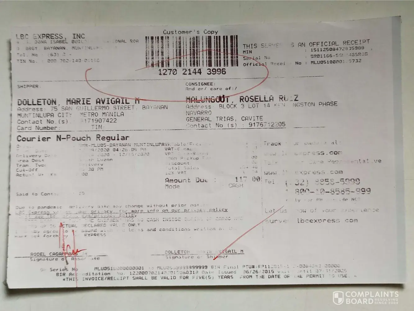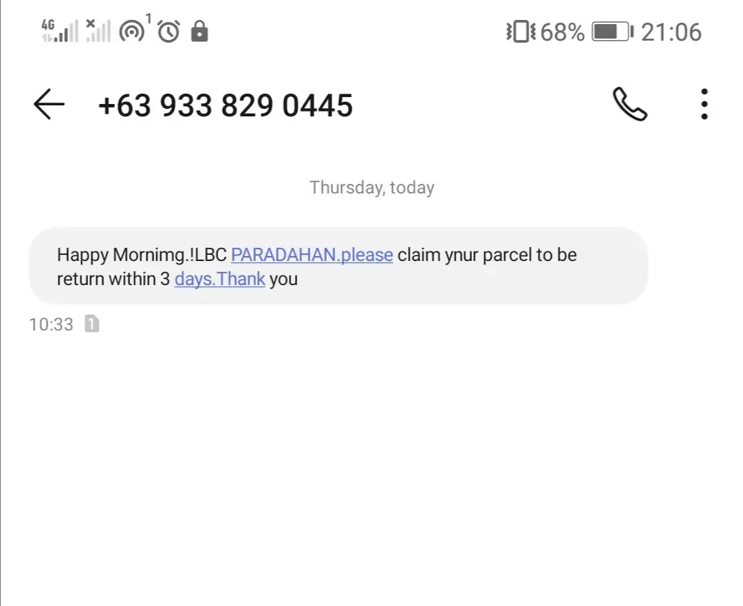 I received text from LBC (today, December 18, 2020) informing me that my package was delivered (on December 18, 2020). I checked my tracking number ([protected]). And it stated that the package was claimed by Krystyn Mariel Cruz (my daughter) on December 18, 2020, but when I call her, she said she didn't claimed any package.