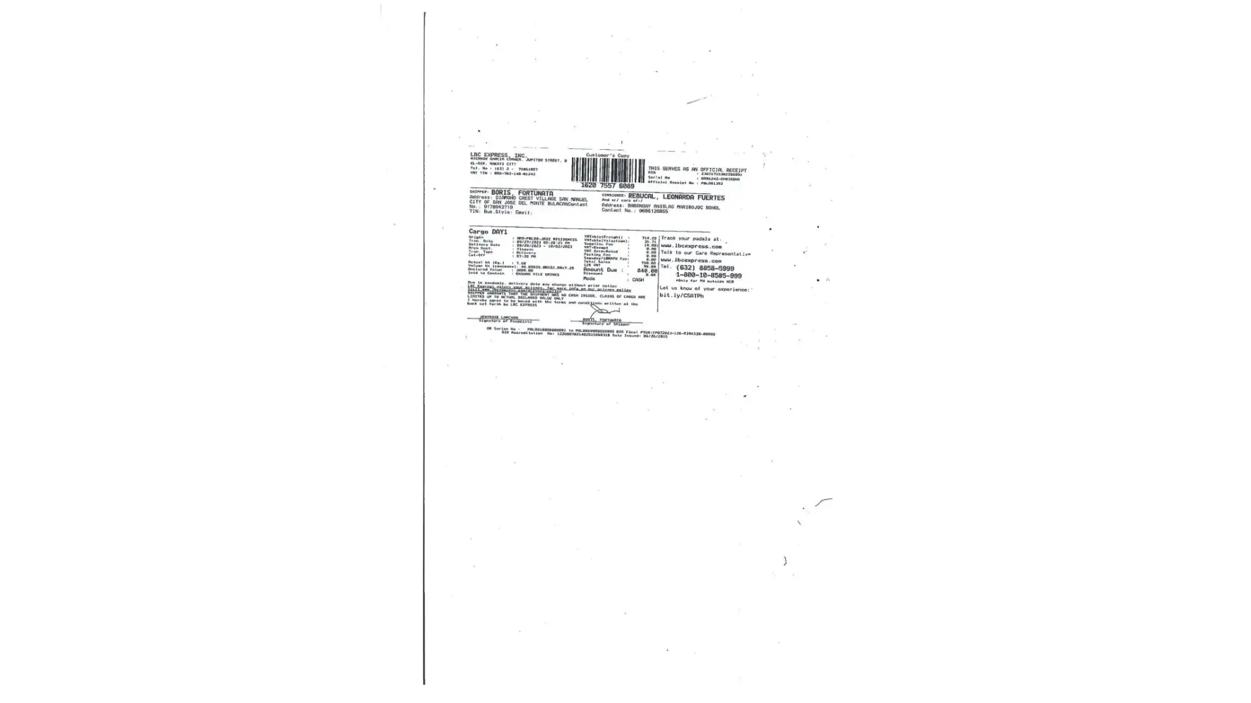 2023, and was on-hold in Tuguegarao Delivery Hub on Oct. 30, 2023 after two delivery attempts, re-routed in Tuguegarao Delivery Hub on Oct. 31, 2023, on Nov. 1, 2023 it was delivered in Sanchez Apayao Hub, Sanchez Mira Cagayan and the said parcel arrived at LBC Jct. Luna on November 3, 2023. I handed to the cashier my payment before opening said parcel in front of LBC employee, and the employees witnessed that the parcel is empty. And according to the manager of LBC Jct. Luna Branch, said payment will be on hold to their branch prior to the conduct of investigation of LBC, until then Miss Lyza Collado could get back her money. But unfortunately, while the case in under investigation, we called the manager yesterday November 8, 2023 and said that my payment was forwarded to the LBC system already. And it was not what we agreed that they should hold my payment until the investigation is ongoing. Please help me to retrieve my payment or my lost items. I hope the investigation will not last long because it is obvious that the parcel is tampered as per my shipper (seller).