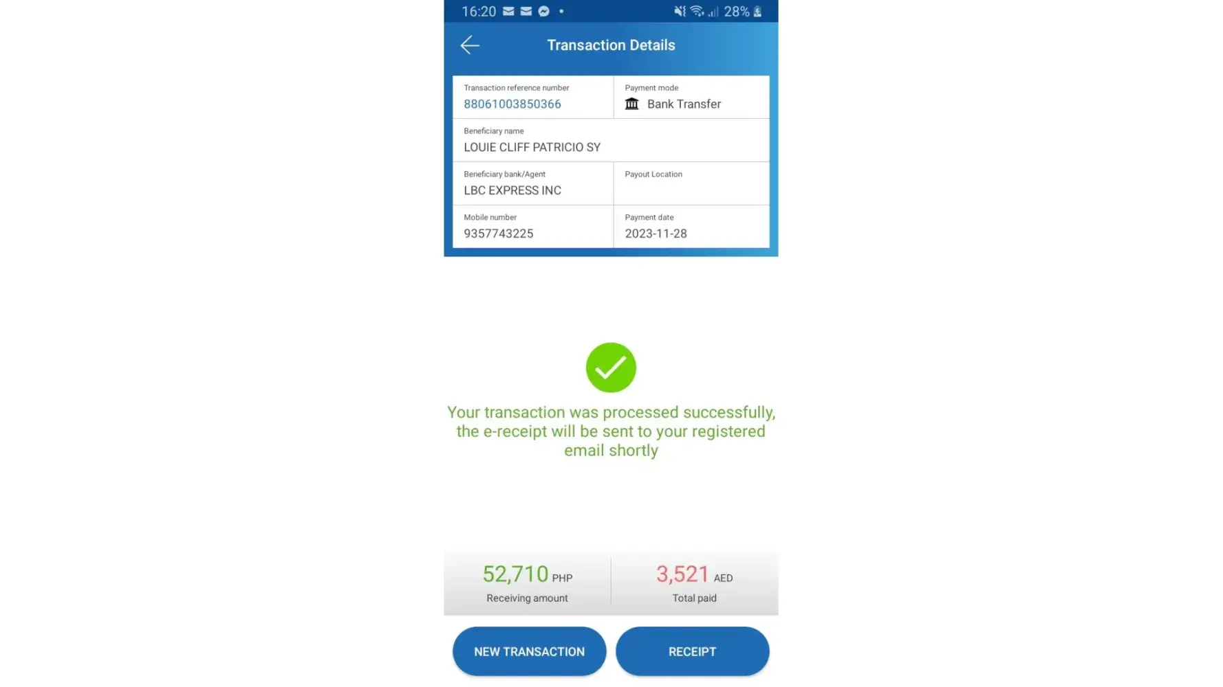 I send money last November 28, 2023 almost 2 weeks still my brother cannot get. 4x he went to SM BACOOR to claim the staffs said, system down. And they don't know when to resume. If system down, then why still ur accepting customers by all means. How come your system is accepting people who like to send. And there are so many alibi. We went to SAN NICOLAS 3, ALDRIN gave a mobile number but he will not answer a call only text message. He said to me to come back the following day because he needs to withdraw money from BDO. The branch budget is only 50k. The following day came, still he has so many alibi. I complaint to Barangay and now I'd like to complaint to DTI and TULFO also for the people to be aware of the modus operand of LBC EXPRESS, they are using the money of people. Our time, effort and disturbance you need to pay too, I will ask for compensation. I regret sending money thru LBC, it will be 1st and last. This never happened in WESTERN UNION and Cebuana to us.