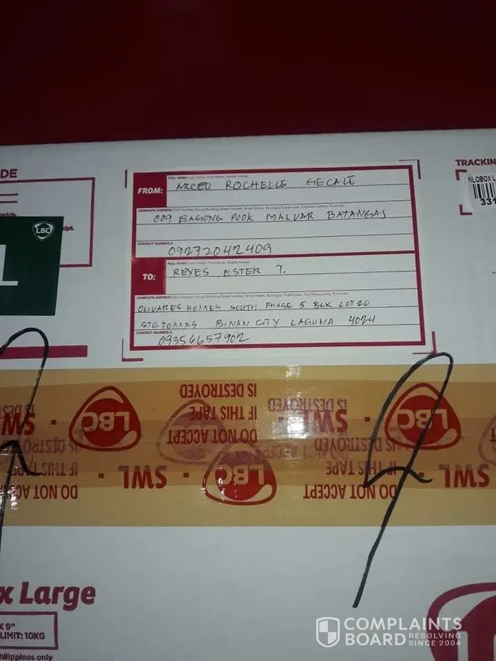 This is supposed to be delivery to LBC Lucky Gold Pasig City, Metro Manila