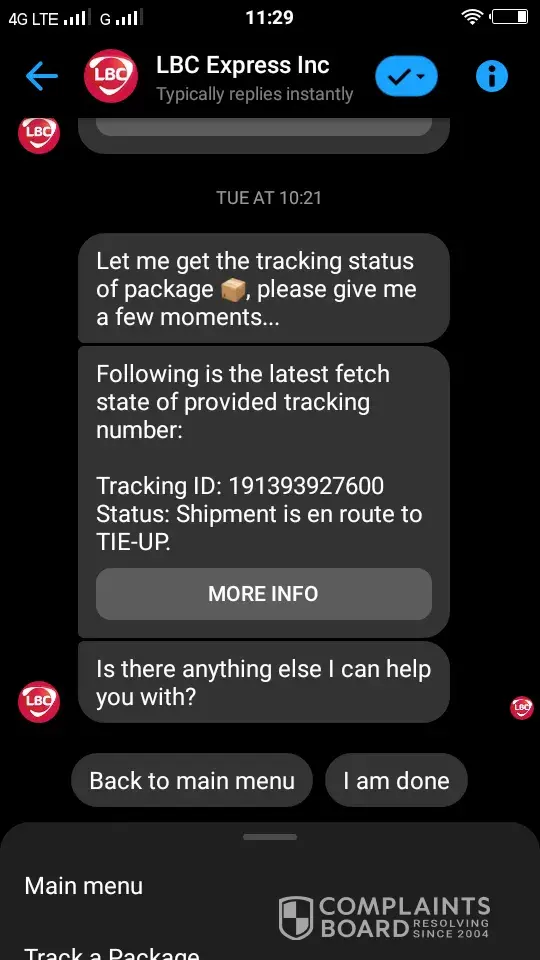 I would like to complain my package sent to lbc annapolis branch last aug.20, 2020 suppose to be going to south luzon particularly sta. Rosa laguna. They told me package will be delivered 6 to 9 days. But after 11 days I follow up with them, still the package is not arriving, worst they cannot track it or went missing. They told me to call me when they find out whats the status of the package but on. The 13 days no calls from lbc I follow with them again they just show me a documents that the. Package was pick up by their courier guy. But the guy is not coming to work yet so they can't question him yet. Until 17 days my relative from laguna sent me a message that lbc annapolis asking her to pick up the package on the same branch where I sent it. I was so shocked and pissed off... At last the. Missing package shows and still it is on the same branch where is send it. What kind of service I am getting here? Im really disappointed by this kind of services...