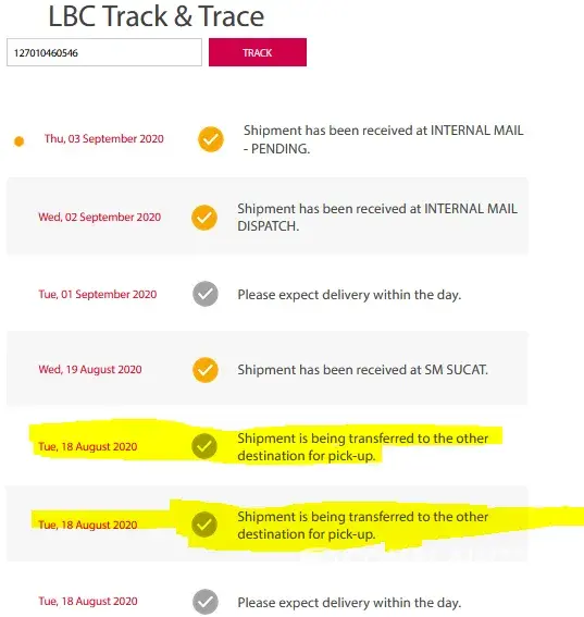 I sent a parcel last August 20, 2020 at LBC Lapu Lapu Legazpi City Branch, as advised up to 1 week lead time for the delivery, check ko lang daw palagi sa online tracking. But up to now, September 8, 2020 still no update! I even asked the sending branch and as advised they will give me feedback pero wala naman nakakailang email na rin ako lagi lang forwarded wala naman masabing exact information. As client we also have the right to know any update, pinagkatiwala naming sainyo yung parcel namin. anong petsa na wala pa rin. it was to be an advance birthday gift pero inabutan na ng birthday ng receiver. Package contains branch new Huawei phone. Please, update me on this. I need immediate assistance.