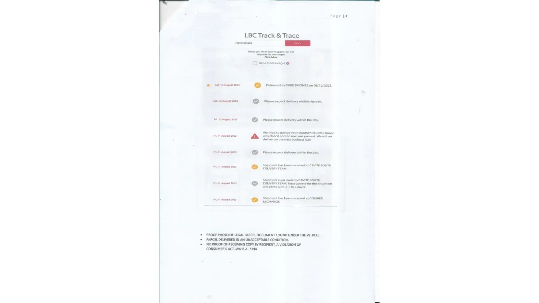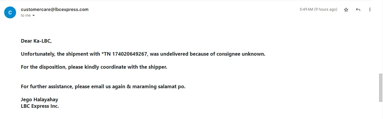 Once we had the information on who will receive the item, as per LBC, they could no longer deliver the item since it has been days.