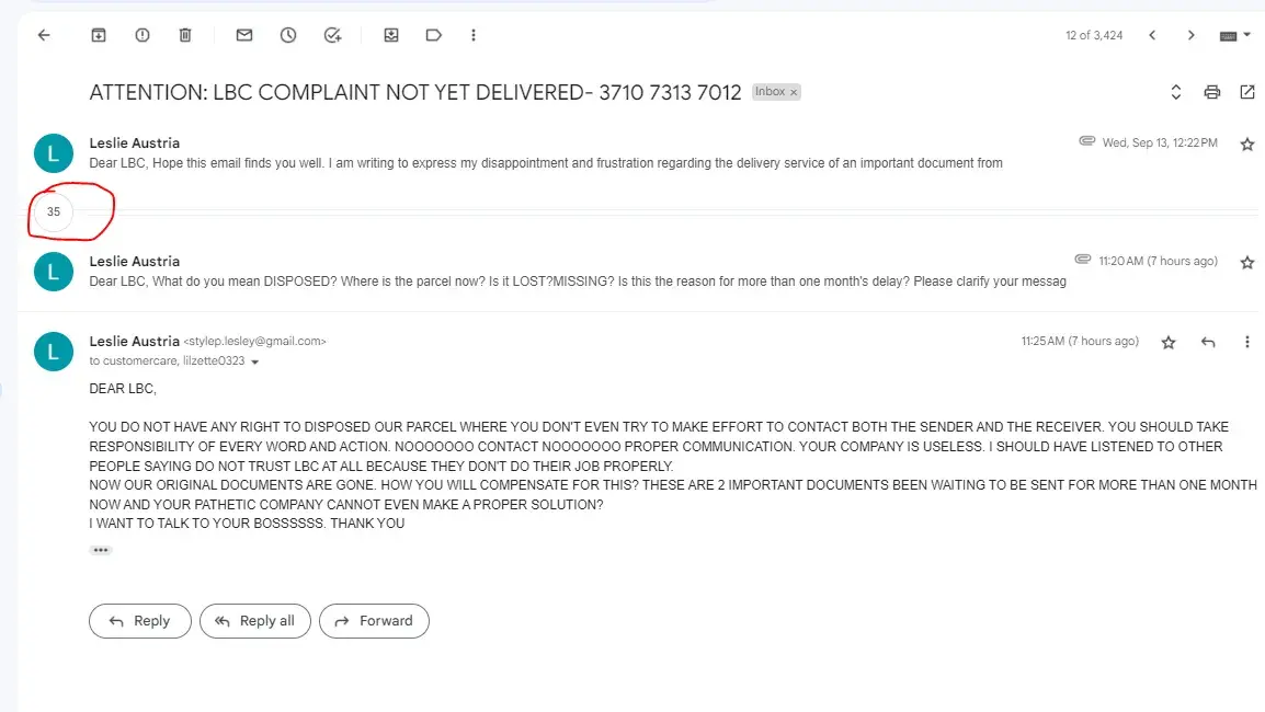 LBC Express Attention: lbc complaint not yet delivered - 3710 7313 7012
