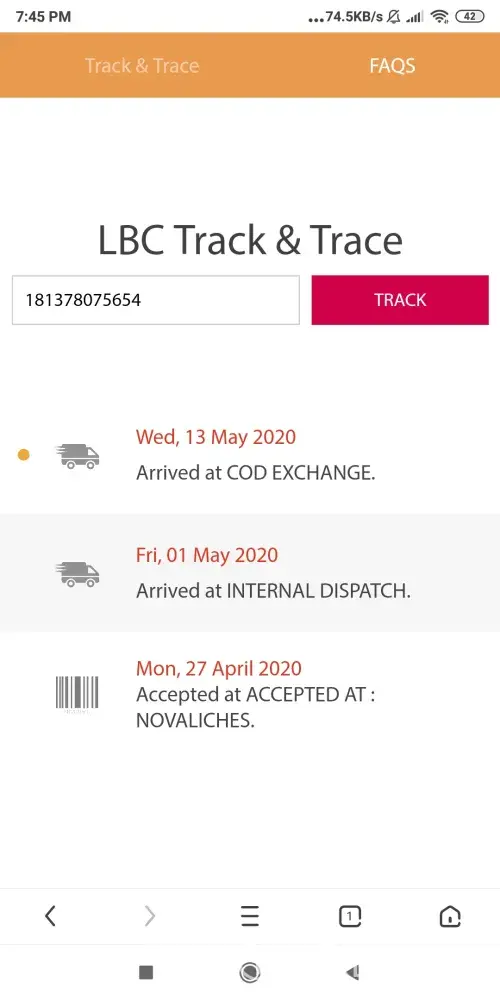 I started to track my parcel from LBC Express since April 27, the shipment was from Novaliches QC to Marilao Bulacan, However it is not moving anymore, it says arrived at COD Exchange since May 13, I went to the pickup branch to seek update however they dont know also the status of it.