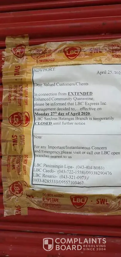 I tried to pick up my package here in LBC SAN JOSE BATANGAS but every time I go to LBC it was close I tried to contact the # posted on the roll up of the branch but nobody was answering my call. I already texted all # the # but no one replied on my text. Since we're experiencing pandemic I understand that your branch was closed, now that your branch is open and im getting my package why your staff telling me that my package was sent to manila and I will pay additional charges to sent back my package here in san jose batangas. why did they send it to manila? did youre company knew that before you we go out we need a quarantine pass?