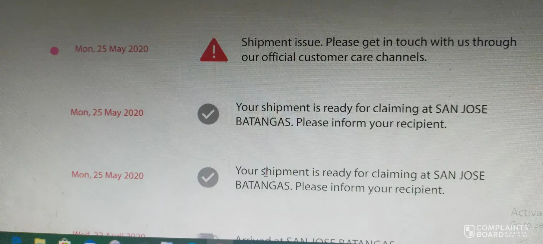 What does "shipment issue" means? After saying the package is ready for delivery? I payed naman for the fees, maayos naman ang address na nilagay ko. Bakit ganyan? The staff should inform through text or call maybe so that we will be aware if its ready for pick up or ready for delivery. What's the purpose of the cellphone numbers na hinihingi, hindi naman ginagamit for communication.