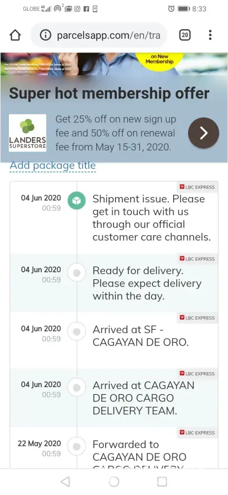Please do something about it. Ilang beses na po ako mga email, nag chat at nagcomment sa fb page niyo pero hanggang ngayon d parin yan nakakarating. Ilang beses ko na binigyay yung address paulit ulit nalang. Nakakawa kayo ng pasensya. Kung d niyo malocate yung address tumawag kayo sa contact number. Kasi ilang beses na kami nagpadeliver with lbc at samw address nakakarating naman dto yung mga parcel to think na galing pa sa cebu ang mga yun.