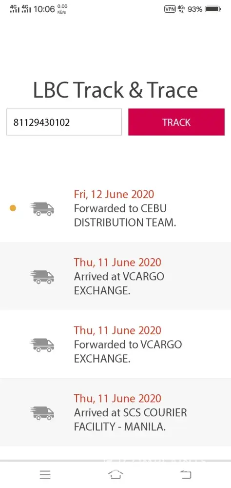 I keep on tracking it, at first it wasn't found and by june 11, 2020 there's an update on it and by june 12, 2020 it says that it was in cebu distribution team but I tracked it today and still no progress.