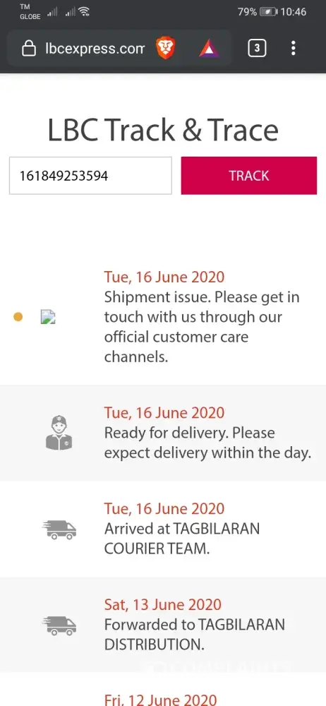 I'm tracking the parcel because i'm leaving balamban soon and i'm afraid that when it's deliver i'm no longer here in balamban.