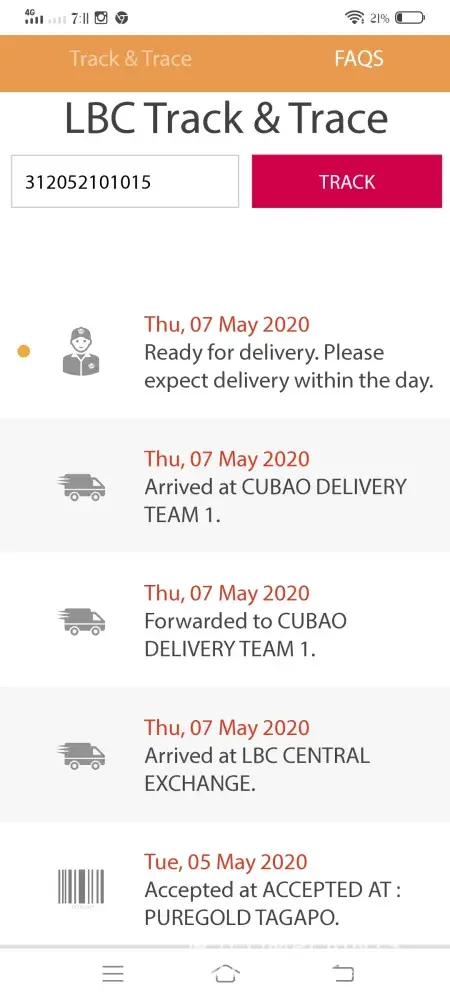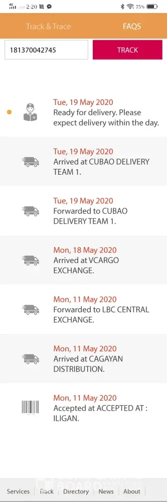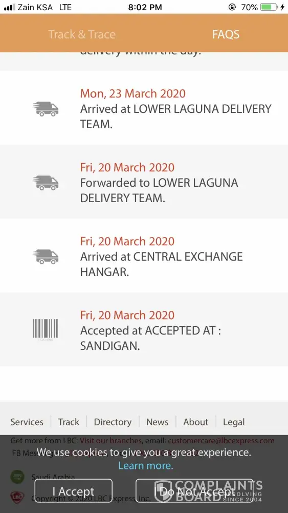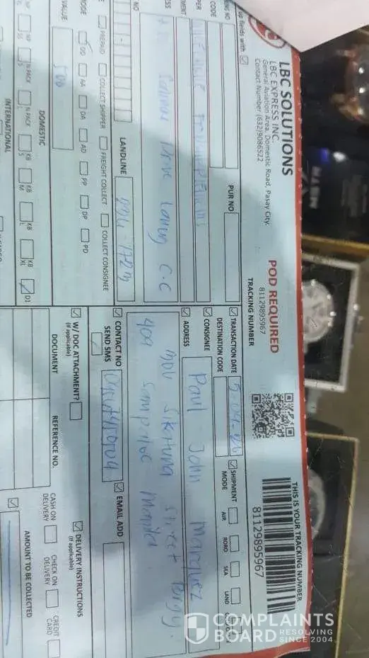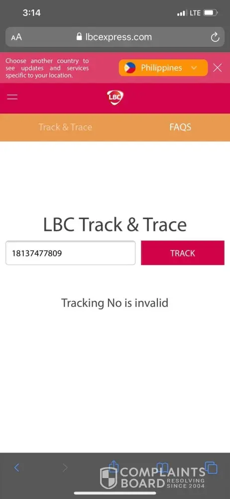 LBC Track and Trace is not soo reliable, moreso, customer service have the poorest training. They even not know how to accomodate client with this kind of concern.