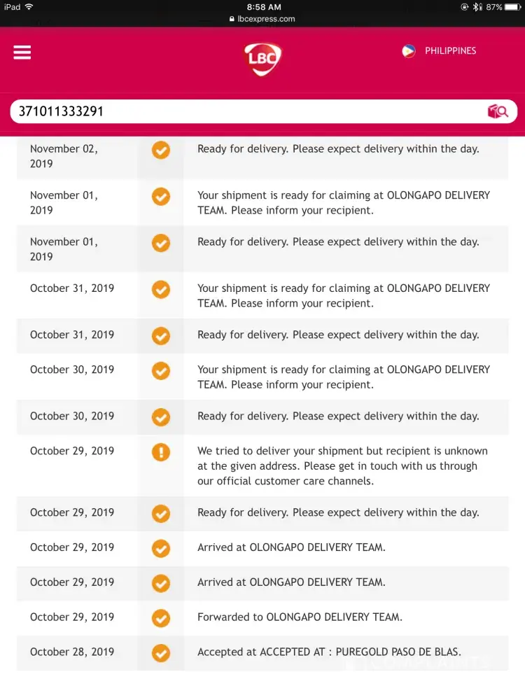shipped docs last 23oct2019, lbc makati glorietta can’t locate