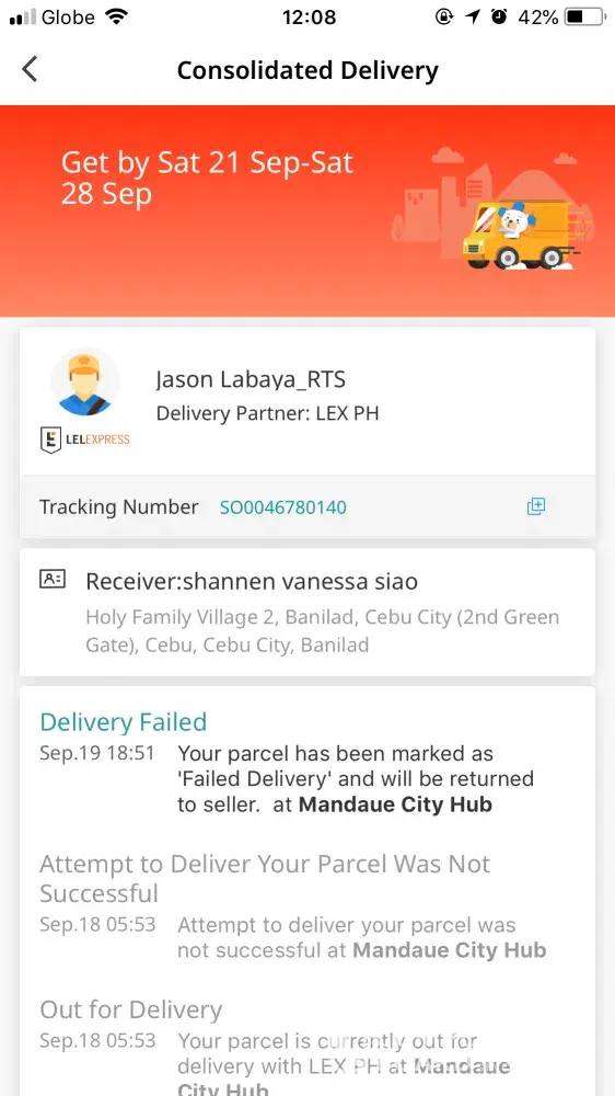 Tinatrack ko everyday yung shipment then pag reload ko kagabi Septemeber 19, 2019 sabi my shipment will be delivered today pero kaninang pag gising ko September 20, 2019 sabi hindi na madeliver kasi hindi ako kilala? how come samantalng binigay ko naman number ko and name ng landlady ko incase na wala ako since nagtturo ako but dahil yung pasok suspended nag stay lang ako sa bahay same with my landlady. And the fact pa na pina rush shipping ko and sabi ng inorderan ko tuesday pa September 17, 2019 pa nya shinip. What i want is ngayon September 20, 2019 i deliver yung gamot ng asawa ko. Please help me about this paki ship today. Here is my number [protected] and the number of my head teacher 092288516059954563819