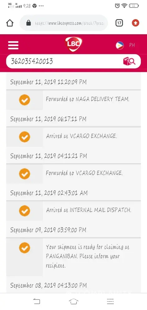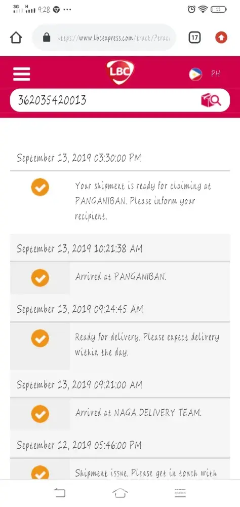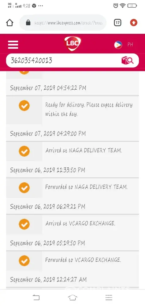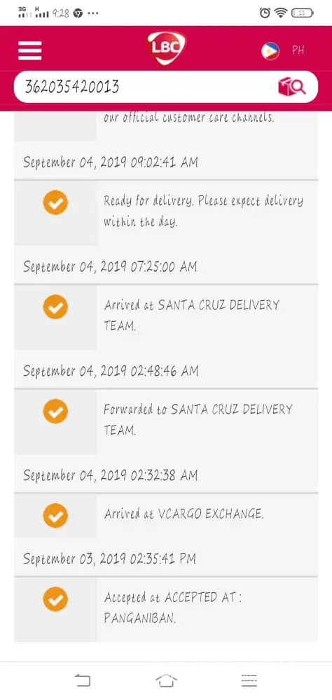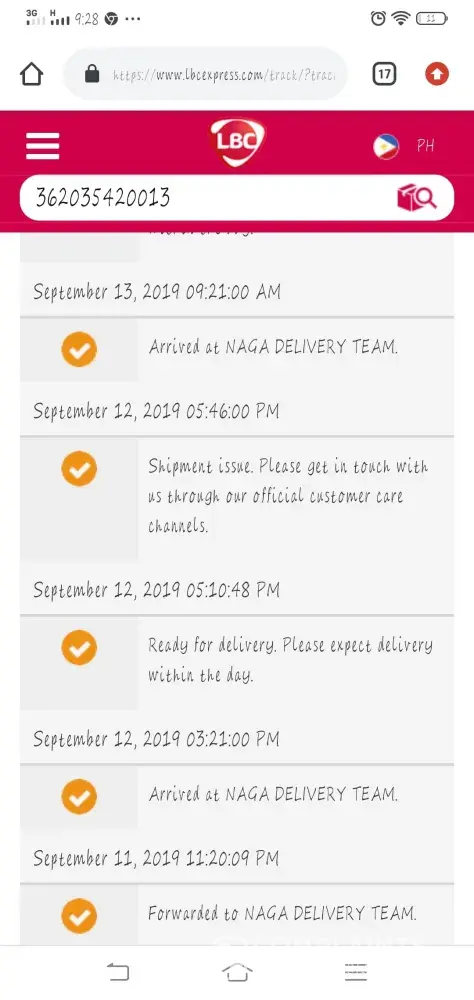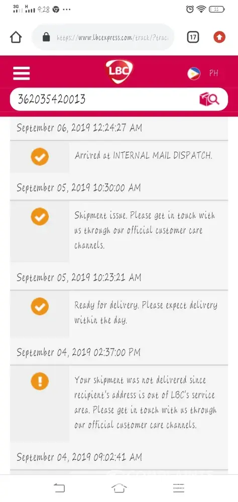 then suddenly change to "We tried to deliver your shipment but office was closed. LBC will deliver the next business day". Early that day we re-confirm the status and they responded that the Parcel was already with the assigned LBC delivery personnel.