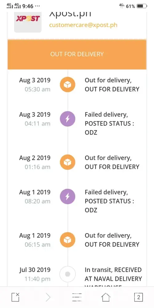 The shopee app and the xpost integrated shows that there were 2 delivery attempts that failed in delivering my 2 packages. Usually the LBC Naval will contact me for the schedule of my delivery but now they just post the status that the adress is ODZ but our house is located near the highway of leyte leyte. The courier is not being reliable or just lazy. I have a transaction history in shopee buying in the same store, the same courier the xpost integrated and the same LBC Naval but this time the delivery has failed which is a bit frustrating.