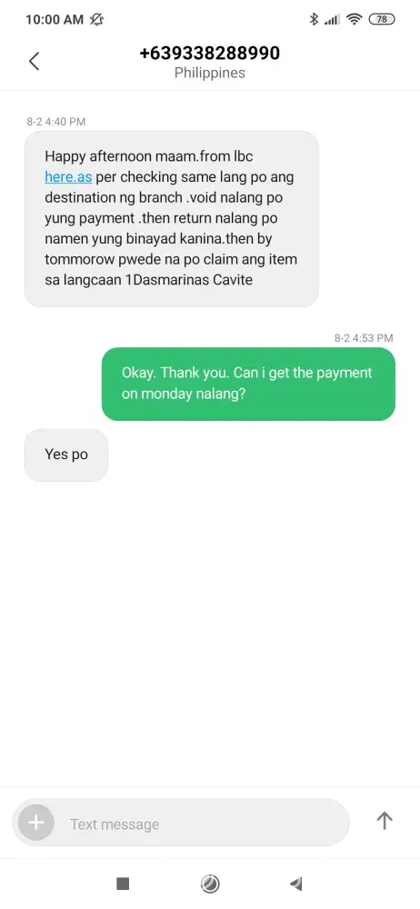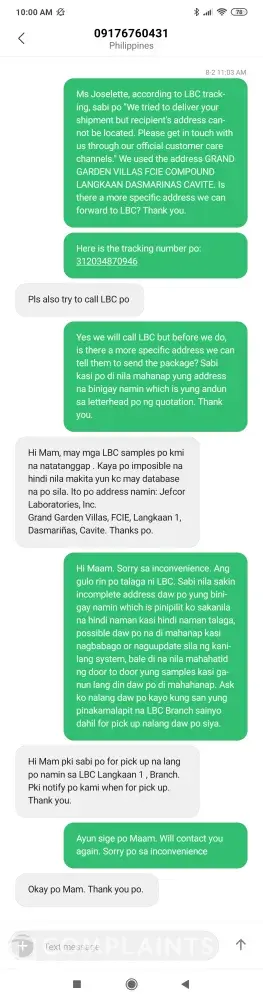We submitted a package due for delivery to Dasmarinas Cavite last July 23 amounting to 298 pesos. Around August 1, receiver told us the package isnt with them yet. We contacted LBC and theyre insisting that we provided the wrong address hence they couldnt deliver it; even if the address we provided is correct. Even the receiver has informed us that they previously receive package from LBC. They asked us to pay for another 298 pesos for retransfer of the item for pick up on their nearest branch. We requested to have it transferred to LBC Langkaan 1 Branch in Dasmarinas Cavite. The employee there issued me an official receipt which took so long to write. The employee there was a newbie and was so slow with her service. She informed that the item will be ready for pickup the next day and they will notify the receiver once it is on their branch. After that, on August 2, 2019, LBC texted me that the payment i re-paid was void and to be returned to me. On August 7, 2019, receiver informed me she hasnt received any notification and when they retracked it with tracking no. [protected] it can be seen there that they delivered it again to the wrong pickup branch. I went to LBC to re-claimed the voided payment and inform them with what happened and they only told me they will email their team. She told me, the same slow employee, that the item wasnt picked up and so they have to return it again to their main hangar or warehouse or whatever. It wasnt picked up by the receiver because it was on a weekend which they dont have any operation. How come they couldnt even let the package stay there for atleast a week for pickup or why didnt they notify the receiver? The package was long overdue for delivery and is an urgent matter. Their incompetency is causing trouble on our ends. Supplier deals are at risks here.