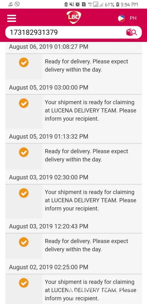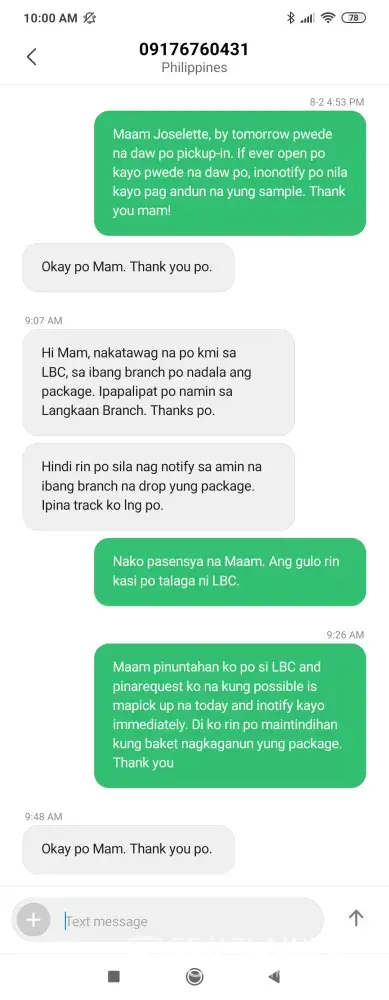 Per information that had appeared from LBC tracking, my packages arrived at delivery team in Legazpi City at 12:42AM August 6, 2019. Unfortunately, these packages have not been forwarded until 5:00 PM same day to LBC Br Rizal St, Old Albay District, Legazpi City where I am supposed to pick them up. For more than 4 hours, LBC delivery Team did not bother to deliver the packages to the pick up point. Why this delay?