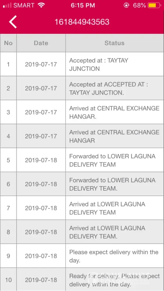 I have experience the worst delivery service in this Company. I bought a cellphone at shopee, an online selling website. The phone is shipped on July 15, 2019 and as of today they still did'nt deliver it even though they said they deliver in July 16, 2019. This is my tracking number [protected]. I already try to contact there hotline and no one pick it up.