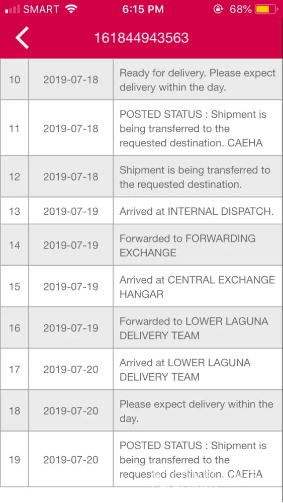 I should be receiving my package on July 19, 2019, but the delivery team won't call or text me if he or she is now on the wait or in the process on delivering my package but still they don't, I called the customer service on July 20, 2019 to check the status of the package if they will deliver it or put the package to the IT PARK LBC Branch CEBU CITY, CEBU...