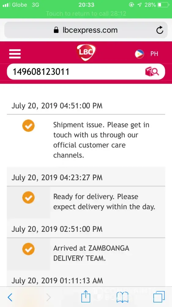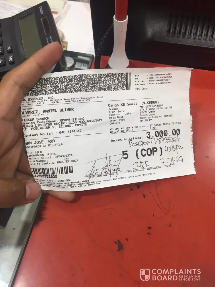 Hi, i would like file a complain against your company. Here's what happened my boyfriend had a transaction with your LBC branch at silang, cavite. and he had a package pick up from binangon rizal. it's a "payment upon pick-up" process and ineexpect nya na package ay 3DS and little did he know that package is not what he's expecting ang nasa box ay GLOBE router na naka box. May transaction sya with a seller sa Carrousell na app and he's name is Roy, San Jose and ginamit pa yung company nyo para makapag scam, aren't you gonna do anything about it? dapat nga bago ipadala i-declare muna yung package eh para specific and clear. he deposited 3k upon payment, and sinasabi lang ng mga taga LBC na process na daw sa system wala ng magagawa, is that how your company works? please please do something about it. it's not only about the amount deposited eh, how poor your company process packages works, ganun ganun lang magpa process? PLEASE this is so disappointing and birthday pa naman ng boyfriend ko today tapos ganyan mangyayare, kung person to person lang transaction eh, eh kayo yung middle man tapos you guys let this happened. tapos i called customer care and all dinidiin pa yung shipper na lang kausapin, ano wala talaga kayong magagawa? like wtf kahit man lang i hold yung payment? para di mapunta sa scammer