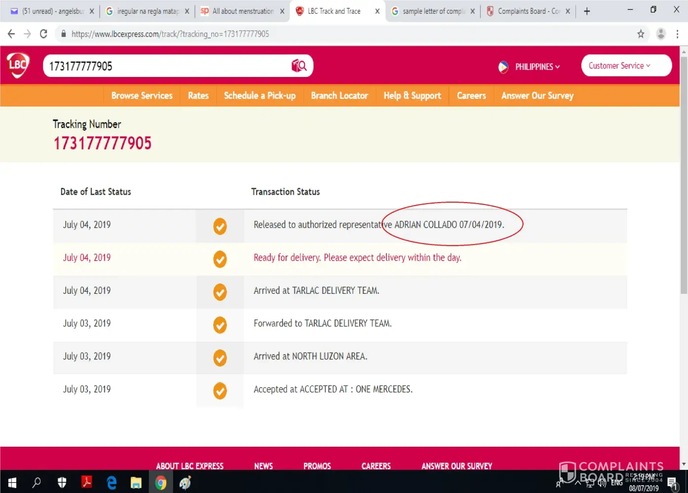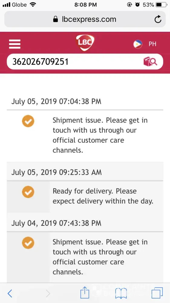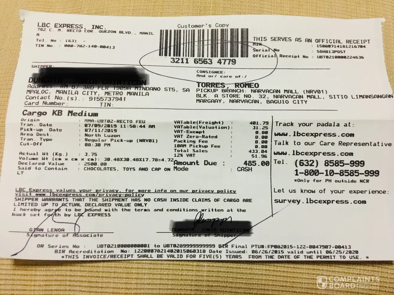 This happened twice already. I hope you check on this bec. I worked in a very known company in the Philippines and our documents were important to us to deliver on time. Please check all your delivery man if they work base on your policy in LBC.