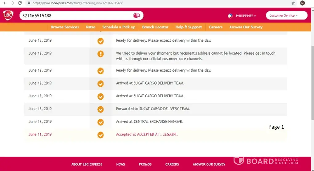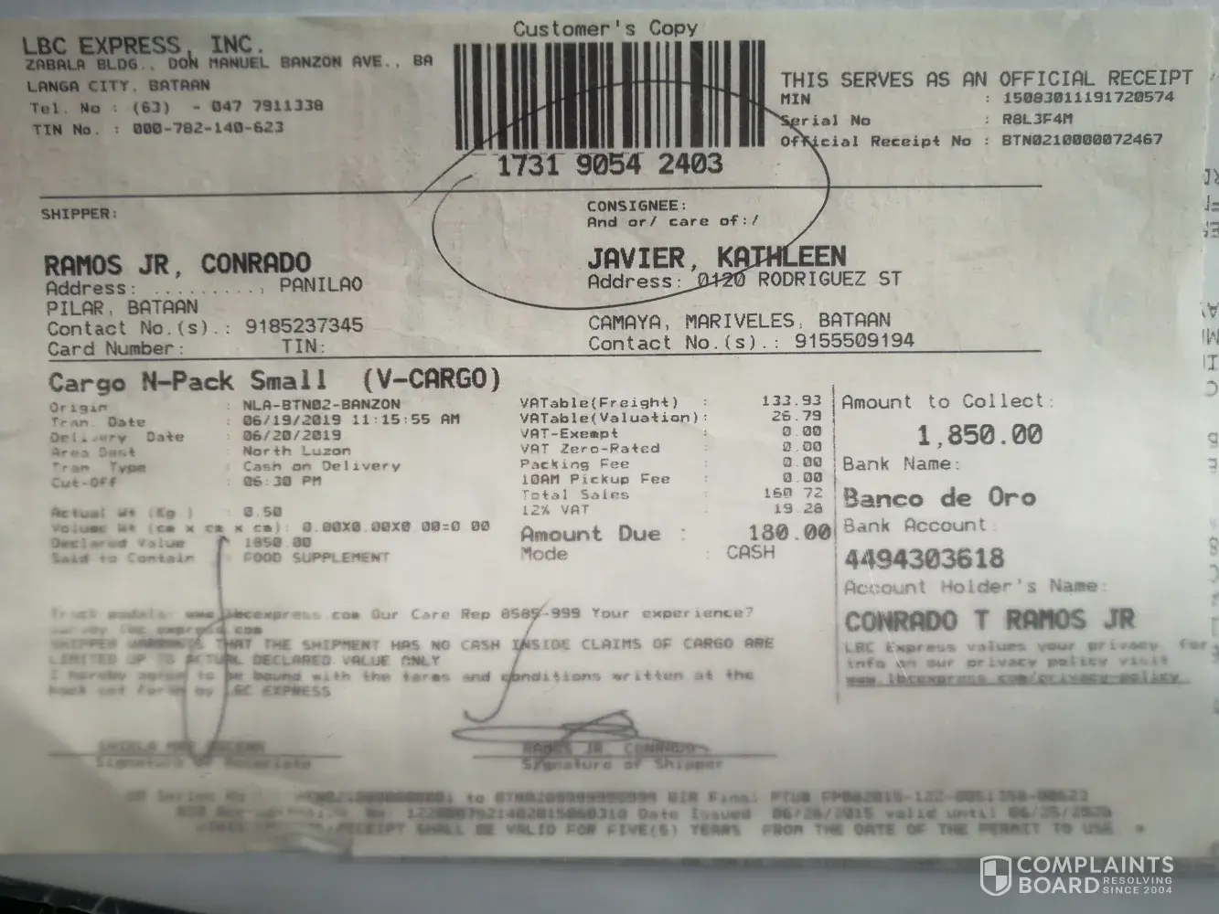 I have a parcel shipped via LBC and the consignee paid using Cash On delivery amounting P5755.00. According to them, Remit to Account only takes 1-3 days after parcel is received. The Parcel was delivered Jun 10 and until today, Jun 25 the payment is not remitted to my account. If I did not check this payment was not remitted, I wouldn't know that I lost P5, 755.00. I have called LBC hotline 6 times, but they kept saying that they will need to Check. My last call was Jun 24 with the OIC named Michelle Ardalles, even promising to call me back the same day to update me, but no one called.