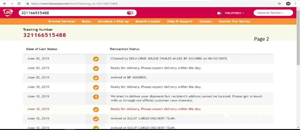 June 7 2019 [protected] What is the concern? Date of Last Status Transaction Status June 21, 2019 Arrived at INTERNAL MAIL DISPATCH. June 20, 2019 Shipment is with a concern. Please get in touch with us through our official customer care channels. June 20, 2019 Ready for delivery. Please expect delivery within the day. June 19, 2019 Your shipment...