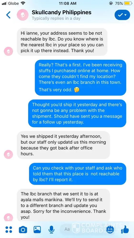 I purchased an item online and the seller tried to ship it via LBC yesterday, June 25, 2019 at Ayala Malls Marikina Branch. The branch told the seller that my place is not reachable by LBC when in fact, the town where live in even has an LBC branch. I've been availing services from LBC since (may it be product shipment or money transfer) and this is the first time that I was told that my place is not reachable by LBC. This caused a delay on my order and their lame excuse is so unacceptable. Can you please let the staff in that branch know that they are not doing their job very well? I thought LBC assured a hassle-free transaction. Every LBC staff needs to deliver that assurance to satisfy customers.