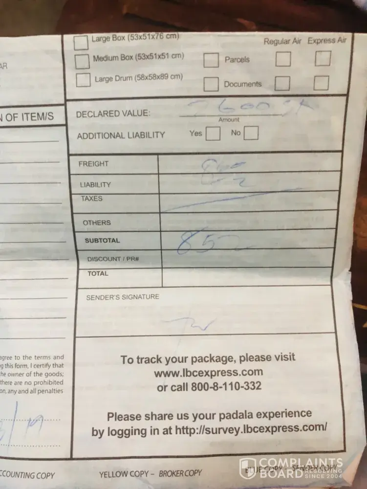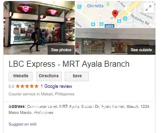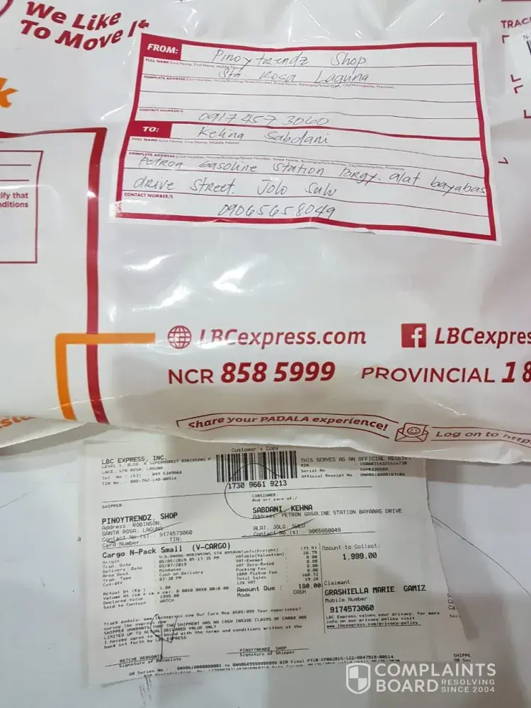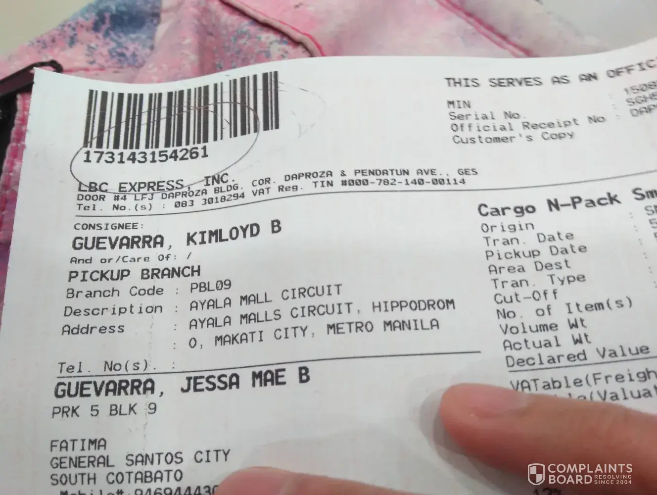 I have attached the receipt here for you record and the branch of LBC MRT Ayala Station.