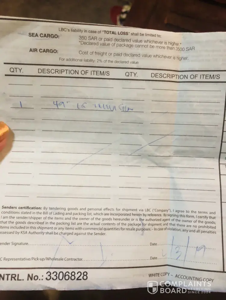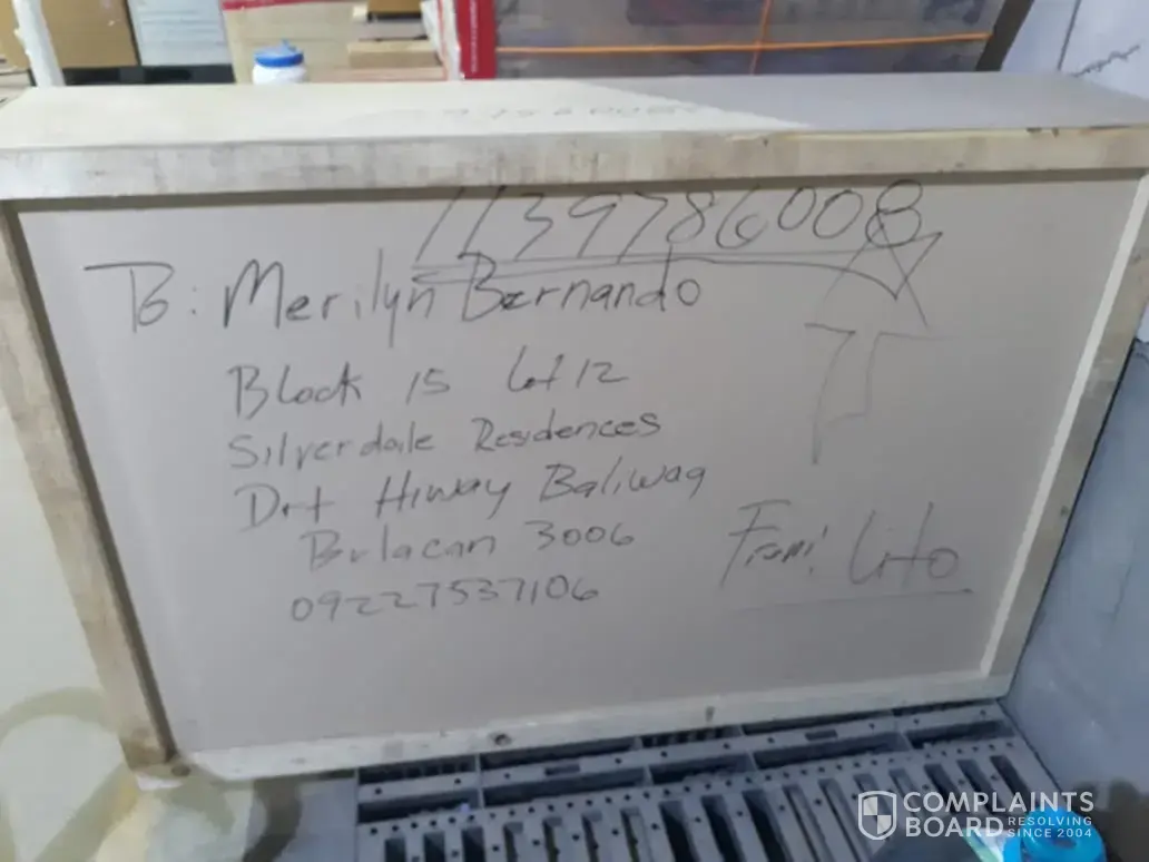 I am Merilyn Bernardo former ofw in Riyadh Saudi Arabia. I'm complaining for a guy name worker in batha named Lito who received my item last March 2 2019. Until now he didn't send my tv for informing that he lost my address I gave him before I went exit on March 4 2019. I sent 2 cargo and I received already but I'm just wondering why I didn't received my television 49'' lg. He sent me 3 tracking numbers but all of that was no record. I wanna file complaint against that courier who received my parcel. I had a whole conversation stating all explanation of that stupid person. Please I need urgent action. Thanks