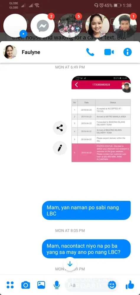 Yesterday, A delivery guy named ‘John Palisbo' texted me asking if I want my parcel to be picked-up or delivered. I got a ring for a short seconds and i wasn't able to answer the phone. Weird thing is, why would a deliver guy ask me if I want to pick-up the parcel if it was for a door-to-door delivery. I waited whole day and got no parcel. I checked the status online and it says ‘consignee unknown no response'. I texted him that my item is for a door-to-door delivery (will attached the screenshots), and then, he texted me back using another number, asked me to go to their office and do the yawyaw ‘magbunganga'. For the record, this is not the first time I encountered issues at LBC branch here. Last December, my parcel which is also a COD took almost a month before it got delivered.