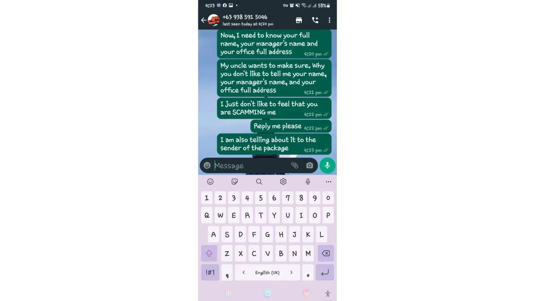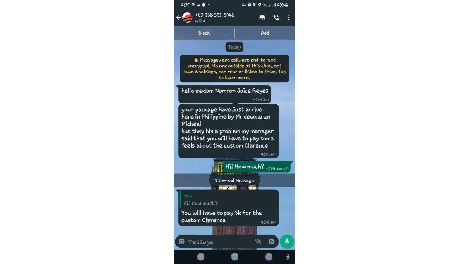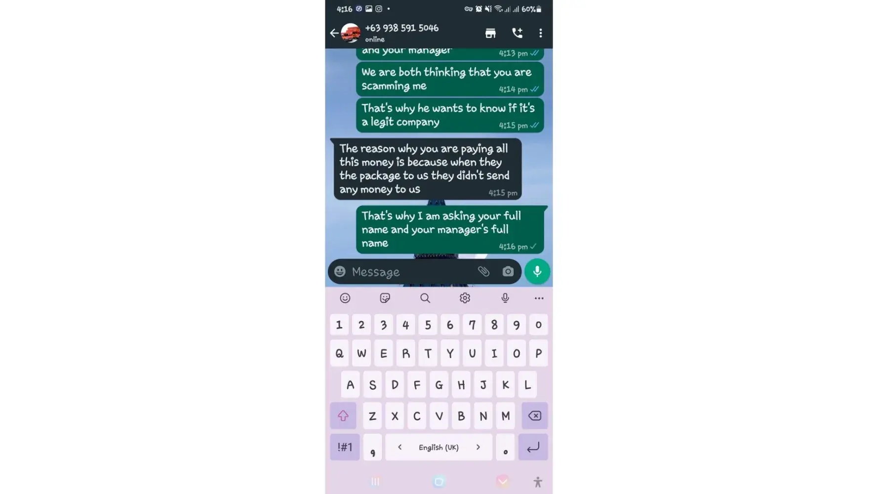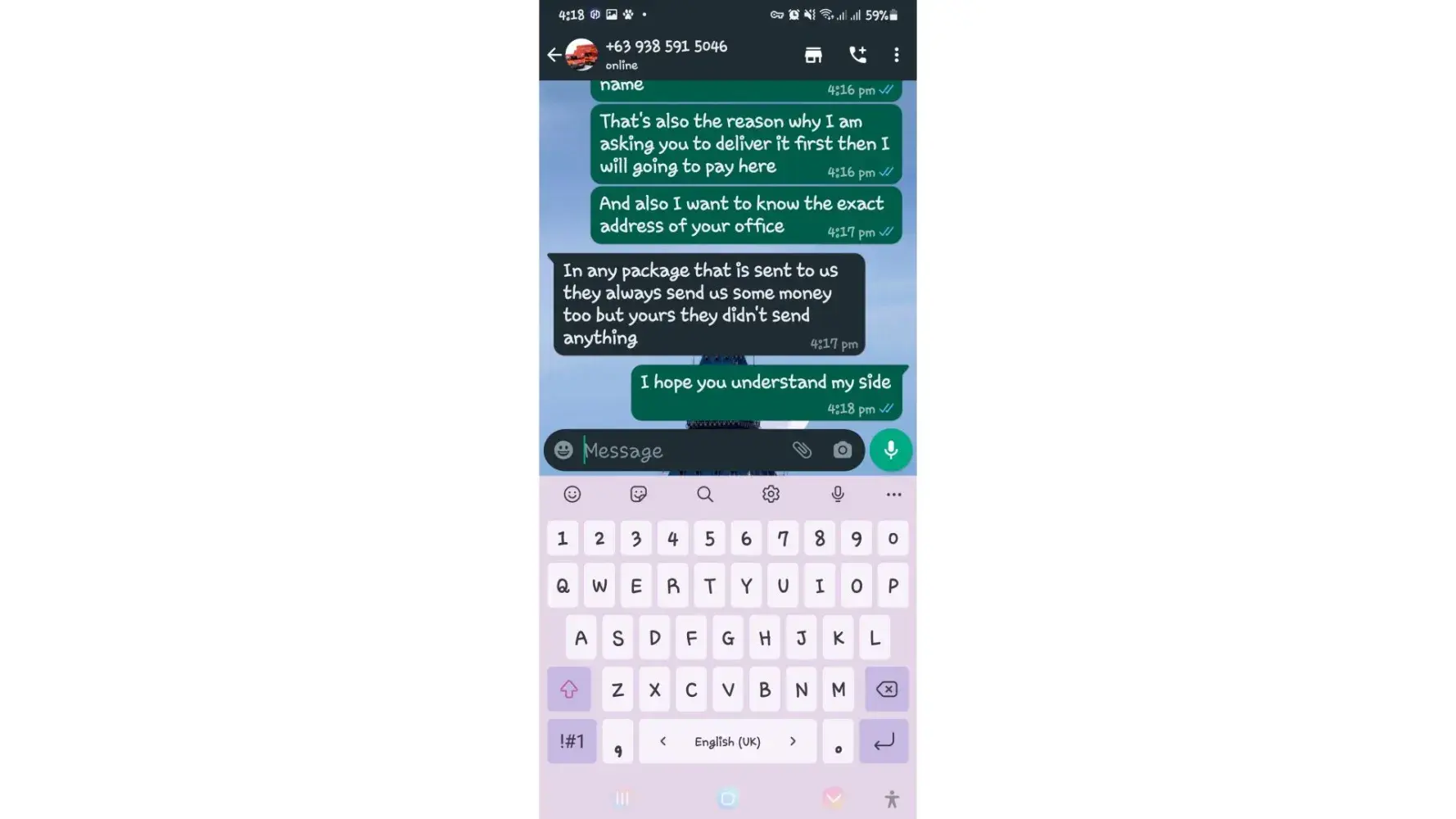 One of lbc agent sent me a message on my whatsapp number telling that my package is already arrived last january 25, 2023 @4:33am and they are asking me to pay the custom clearance worth 3,000pesos immediately. I already paid that last january 27,2023 @8:13pm then last january 28, 2023 @5:15am they sent me a message again they are asking me to pay for the delivery charges for 1,000pesos and they said that is my last payment and they assured it to deliver my package and I find a way just to pay it today, january 31, 2023,@8:47am but they said its not 1,000pesos anymore because I need to pay 2,000pesos now instead of 1,000pesos for the first payment they are asking for just the delivery charges. Until now they are still holding the package they are asking for more money that they want me to pay more its now worth 5,000pesos just to deliver my package they said the delivery man is not going to accept my package just to deliver it again that's why they are demanding for more money so they can deliver it to me. They are scamming me! They gave me a 2 options I need to pay 5,000pesos just for the delivery charges or I will pick it up but they said that I still need to pay them again before they will release my package.