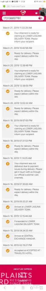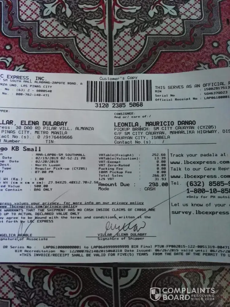March 14 nagpadala kami sabi sa tracking ng lbc nasa laguna delivery team na nung March 16. Hanggang ngayon d pa narerecieve ng customer namin. Sabi sa report no payment. Nagrereklamo customer namin na bakit no payment eh hnd naman talaga dineliver sa knila kaya d pa nila nababayaran. Araw araw nila inaabangan delivery hanggang ngayon wala pa. Dog leash lng naman na tatlong piraso bakit hirap kayong ideliver.