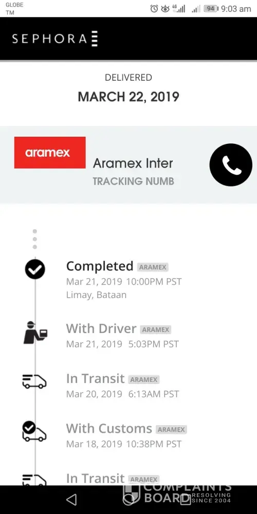 Last march 22, 2019 I received an email from contact@sephora. Sg informing that the parcel was completely delivered thru aramex international last march 21. I immediately contact aramex to verify the email from sephora. Then upon verifying from their system from one of aramex representatives, the said parcel was already delivered. I informed her that I did not received any parcel from lbc last march 21, I asked her who received the package, and she told me that I received the package, she also informed me that the package was received around 2 in the afternoon. Honestly, this is the first time that I encountered this kind of issue with lbc.