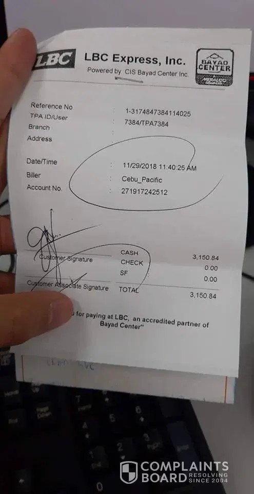 On Nov. 29, I went to LBC Colon to wire my Cebu Pac payment, I booked a flight this coming Dec.30. Then on the next day, I received an email from Cebu Pac that they haven't received my payment thus they are going to cancel my booking and indeed, there is no booking under my name when I checked their website. Then, I got a call from LBC Colon that they will submit a report. It's been two days already but I havent heard anything from them anymore. I dont need a report, all I need is to have a CONFIRMED STATUS of my flight this December 30 because I wanna go home. Please this is urgent as the seat availability is very limited! Is there a solution for this or shall I get my payment so that I can book a new flight. Pls call me since I havent heard any update from LBC anymore. My callback number is [protected] and my email address is [protected]@gmail.com