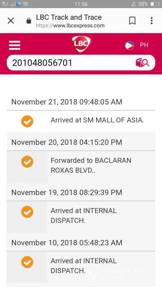 Sent a parcel to cagaya de oro last saturday.. Tracked it last monday and it says that it's forwarded to cagayan distribution. However, the parcel did not arrive yet and it' s perishable!.. Rechecked but still no update😠😠😠.. We kept track of it for 3days by going to the lbc brach where it's supposed to be picked up but the same answer was, it's still in manila. You are killing a business here. Please update your tracker.