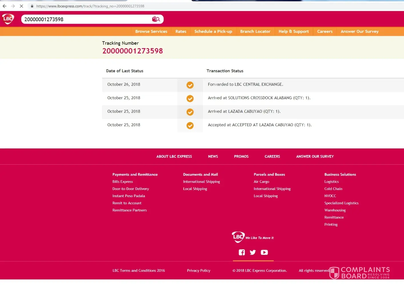 I sent a package last Oct. 28, 2018to LBC branch here in Sta. Rosa to Pangasinan.