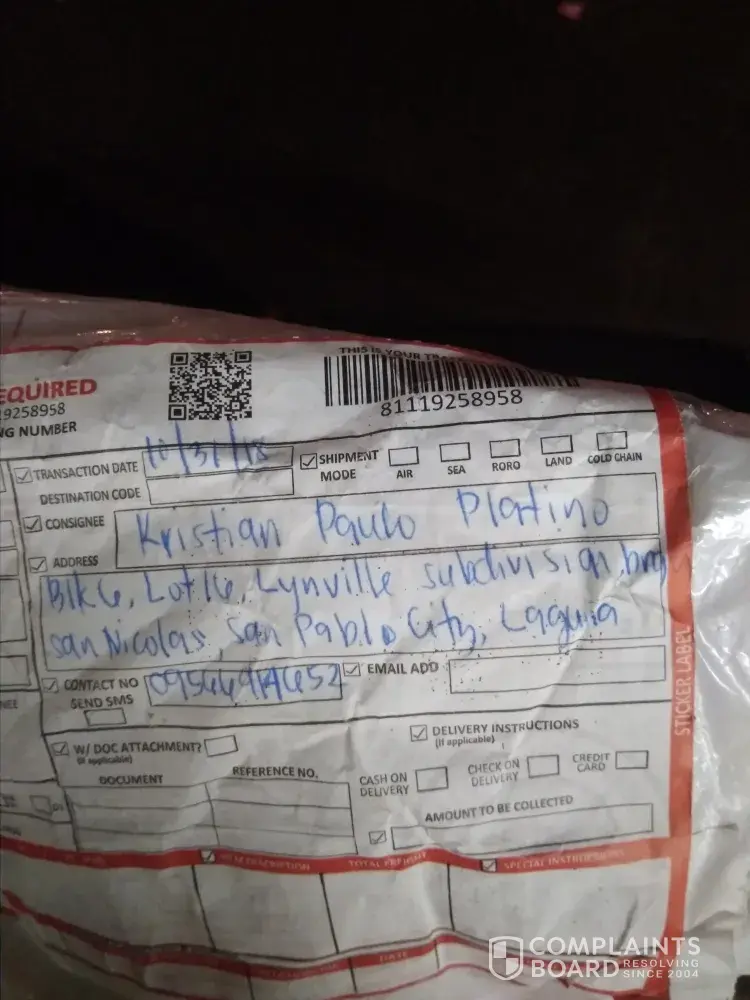 October 25, 2018 Arrived at LAZADA CABUYAO (QTY: 1).