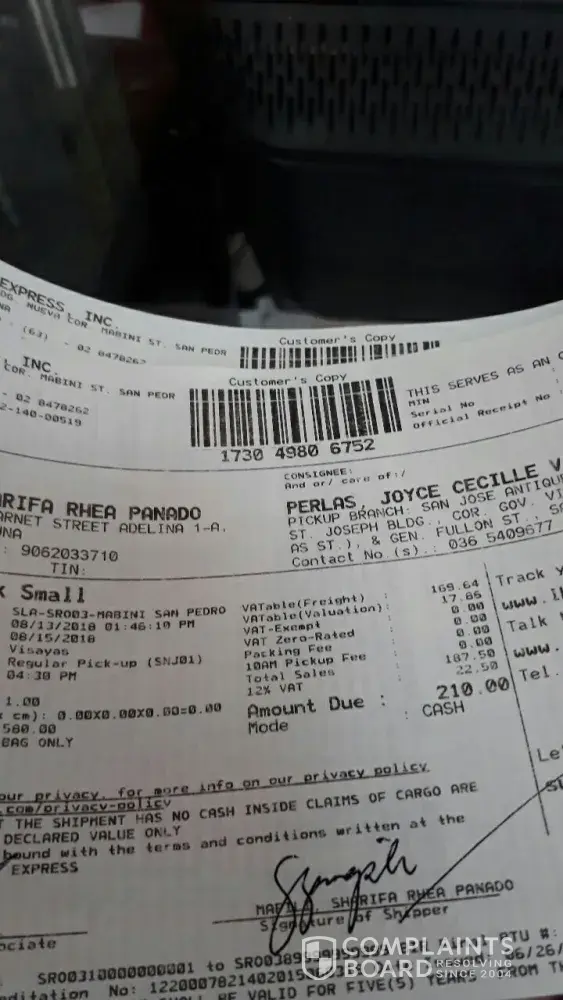 Me and my wife's passport were delivered on July 26, 2018 at our house in Valenzuela City one day early as scheduled. The delivery man is nice but he was in hurry that he did not wait for me to check the items which are in two sealed plastic envelopes. He even did not let me sign the record book, evidence that I received the parcel in good condition. After he's gone, I checked the parcels, my passport is ok, but my wife's is damaged. My wife and I went to LBC - DFA SM Manila to complaint. Certain Jojo of LBC called Mr.Gary of LBC (using my wife's cp) and was told that they will investigate.