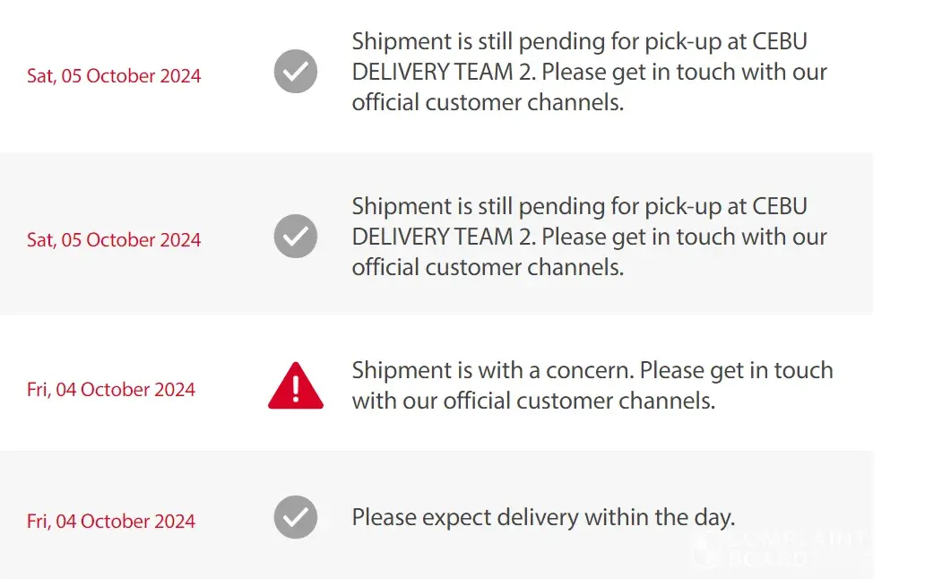 Follow up ko lang yung parcel ko na nasa cebu delivery team 2 pa deliver napo asap
