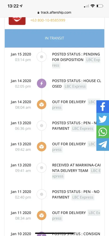 up until today that incompetent delivery team haven't delivered my parcel with tracking number [protected]. worse is they posted lies that nobody was to receive and my house is closed/empty. my parcel was dispatched last jan 17 and til now wala pa rin.