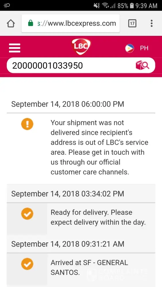 I would like to ask for an update on my shipment with ref. no [protected]. I was texted last sep 25 informing me na mag expect na ng delivery. Kukunin na sana ng husband ko eh wala naman kayong update kung nasa area na ba kayo. Like other RESPONSIBLE courier po nagte-text po talaga. Tapos text na naman kayo ulit by saturday tapos wala rin namang update kung dumating na kayo sa area. Kahapon pagtrack ko ang sabi magready na ako for delivery eh wala nga akong natanggap na text. Hanggang ngayon po wala parin item ko na may tracking no. [protected]. Sa totoo lang po may problema services nyo. Sana naman po aksyonan nyo.