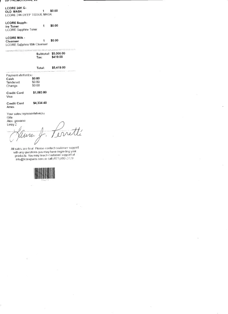 I was on a cruise last week on Royal Caribbean Oasis of the Sea. Stopped at St. Maarten Dec. 20, 2018. I was pulled into Santis N.V. by very convincing people. Was given a demonstration of L'Core Crystalline on one side of my face by Ricardo Yohann. Whatever he used on me did make wrinkles seem to disappear. Foolishly, I purchased the product at $1200. He...