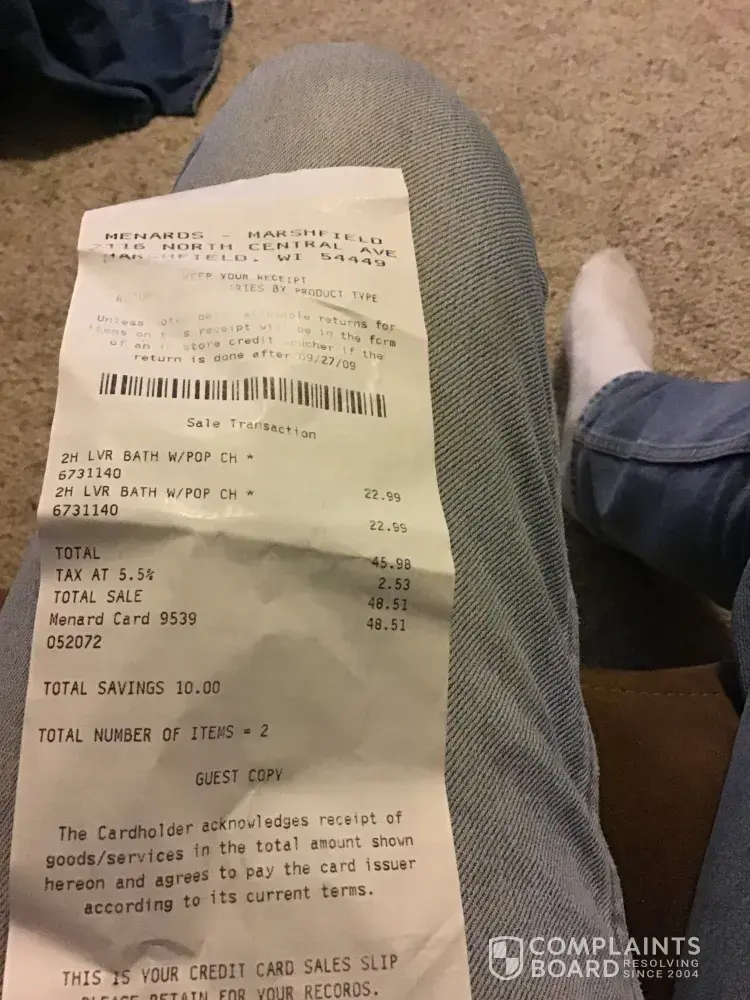 Tuscany medicine cabinet. While opening the door on the cabinet I had less than 2 yrs the spring broke and flew past my head like a middle. Menards gave me a number to call and that person gave me an e-mail for Menards Customer Service. They said they would not be able to replace the hinges on the cabinet unless we had the receipt. We do. Not have it since we sent it for the rebate. We said we would pay for the hinges. They said not without the receipt. Very disappointed!