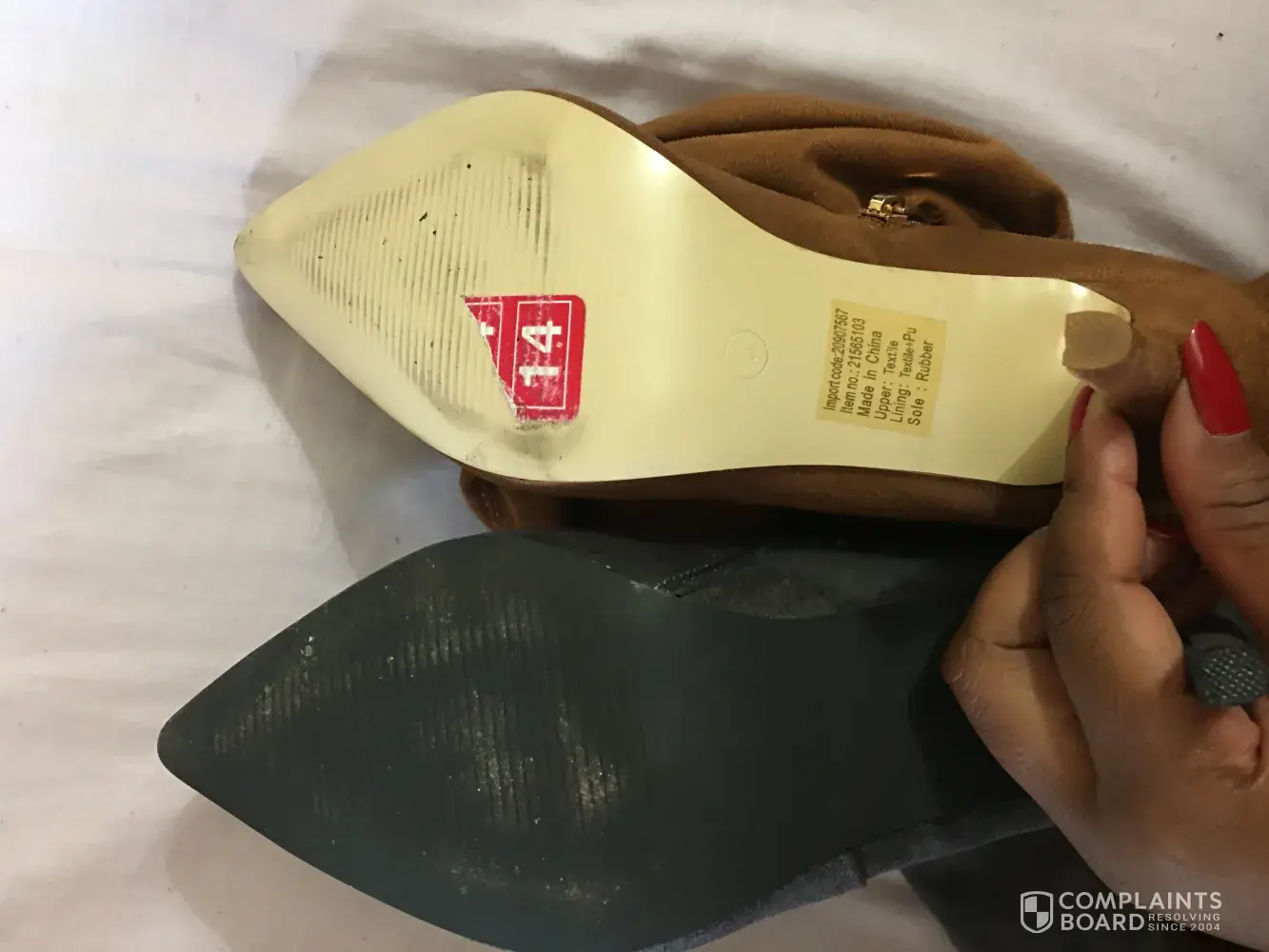 There is a photo of the boots on the left from the store in Canal & right the one from Guguletu.When I purchased those boots not one of the staff examend the boots they just swipe & sell the goods to get rid of the stock.